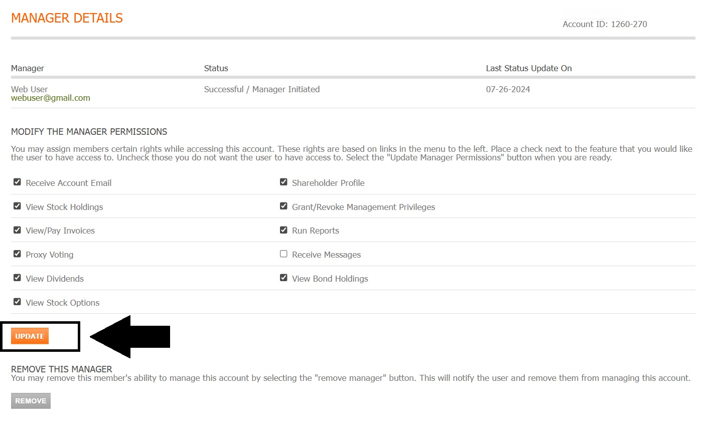 Fig. 43 Remove button location for revoking manager access#