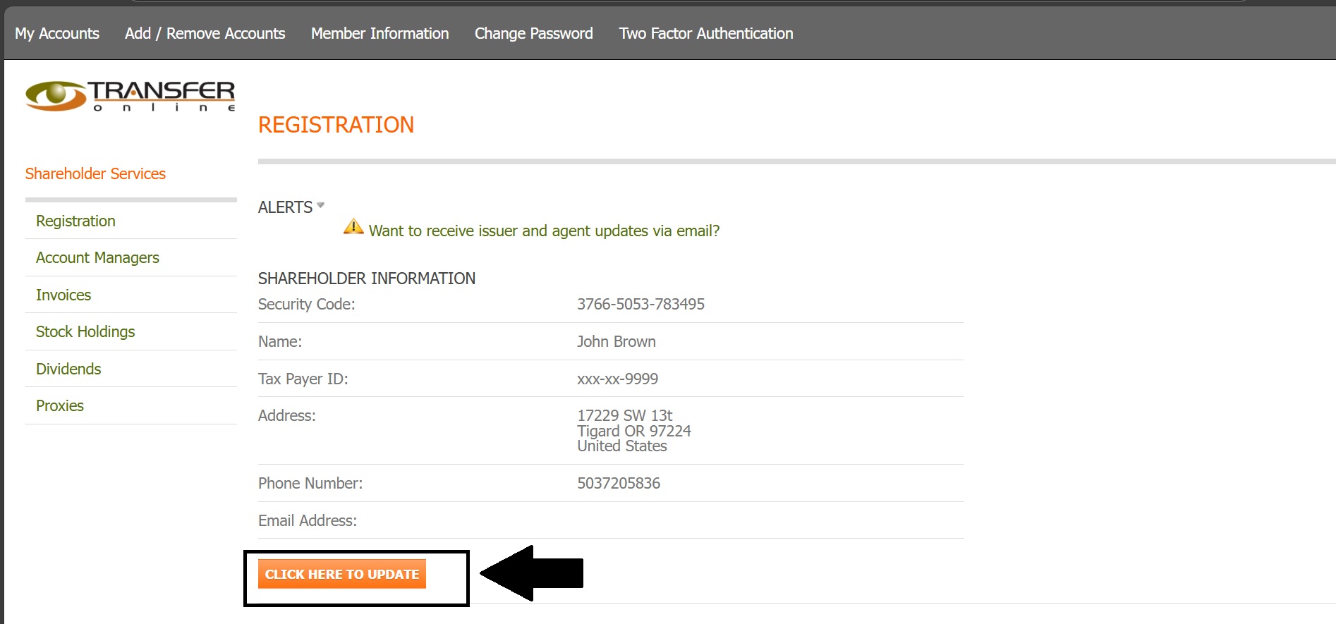 Shareholder Information - Contains your personal or entity details